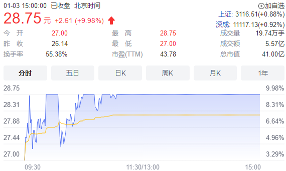 重要资讯:沪深交易所2023年01月03日公布的交易公开信息显示,炜冈科技因成为当日换手率达到20%的证券上榜。炜冈科技当日收报28.75元,涨跌幅9.98%,换手率55.38%,成交额5.57亿元。