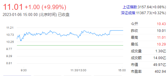 重要资讯:沪深交易所2023年01月06日公布的交易公开信息显示,数源科技因成为当日涨幅偏离值达7%的证券上榜。数源科技当日收报11.01元,涨跌幅9.99%,偏离值9.83%,换手率33.63%,成交额14.0亿元。
