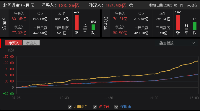 资金动向:北向资金午后加速进场,全天大幅净买入133.36亿元,创2022年11月以来新高