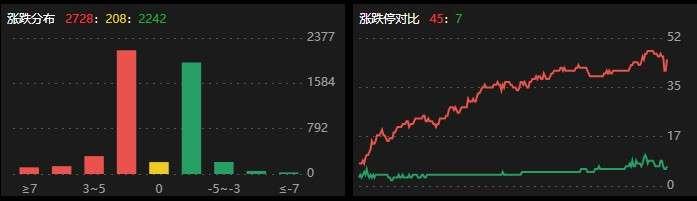 昨日,A股三大指数集体收涨,截至收盘,沪指涨0.74%,深成指涨1.81%,北证50涨1.12%,创业板指涨3.44%。沪深两市全天成交额10725亿元,北向资金净买入92.01亿元。两市超2700股上涨。板块题材上,锂电、光伏等赛道股午后大涨,机器人、工业母机涨幅居前,贵金属、教育板块等收跌。