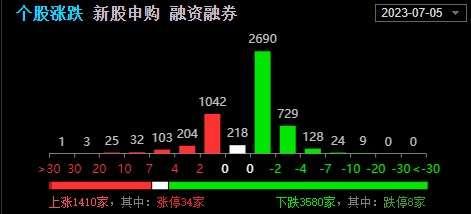 7月5日,大盘全天震荡调整,三大指数均小幅下跌。截至收盘,沪指跌0.69%,深成指跌0.91%,创业板指跌0.91%。北向资金全天净卖出40.35亿元,其中沪股通净卖出11.58亿元,深股通净卖出28.77亿元。