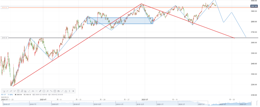 而重特朗普此前的表态可以预见,在11月份美国大选之前,特朗普更倾向于令美元走强,而鉴于美国二季度GDP在经历重挫以及失业人数暴涨的情况下,预计三季度美国经济难以恢复去年水平,这意味着特朗普更有可能将美国国内的经济问题转化为全球政治经贸问题,以获取更高支持票数。加之稍早前美国生物科技公司Moderna公布的病毒疫苗数据受到质疑,这令美国2020年三、四季度经济存在巨大不确定性。这种情况意味美国标普500指数或早于5月1日经济重启那刻起已触及顶部。