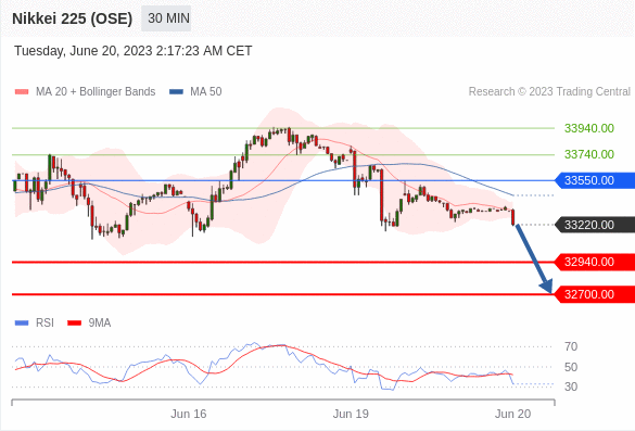 交易策略: 在 33550.00 之下,看跌,目标价位为 32940.00 ,然后为 32700.00 。