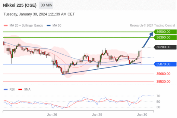 交易策略: 在 35870.00 之上,看涨,目标价位为 36390.00 ,然后为 36500.00 。