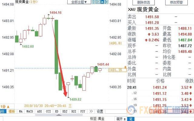 美国公布的三季度GDP增长放缓低于预期,因商业投资下滑被弹性消费支出和出口反弹所抵消,这可能进一步减轻金融市场对衰退的担忧。截至发稿,黄金下挫逾4美元至1489.82美元/盎司,美指跳升逾10点至97.736。