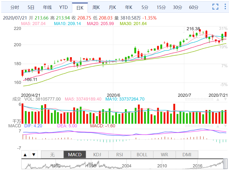 最新股价:208.75