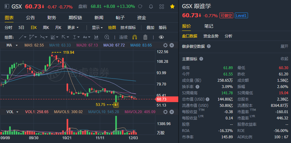 12月7日讯,跟谁学盘前涨超13%,此前宣布定增融资8.7亿美元。