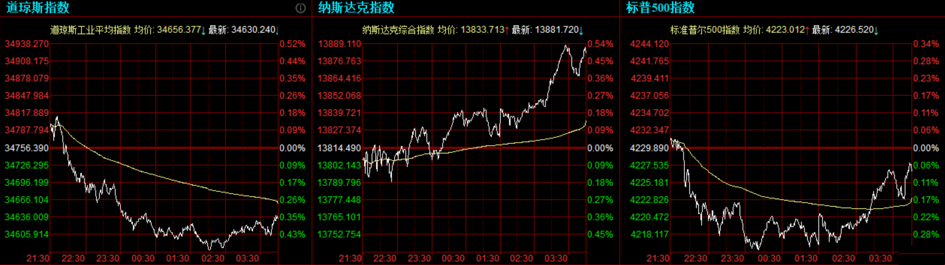 道指跌126.15点,或0.36%,报34630.24点;纳指涨67.23点,或0.49%,报13881.72点;标普500指数跌3.37点,或0.08%,报4226.52点,距其5月份创造的历史最高水平差距仅0.2%。