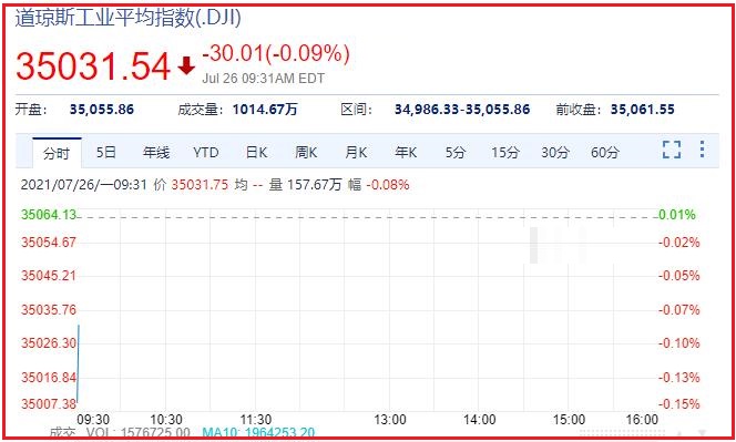 美股三大指数小幅低开,道指跌0.2%,纳指跌0.14%,标普500指数跌0.09%。热门中概股集体下挫,教育股领跌,新东方跌超27%,好未来跌超30%,高途跌超29%;滴滴、腾讯音乐跌约10%。