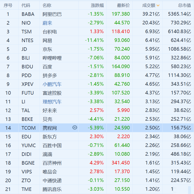 因中国央媒批游戏产业,腾讯概念、网络游戏股全线重挫。腾讯ADR跌7.32%,腾讯音乐跌3.03%,网易跌11.41%,哔哩哔哩跌7.06%;阿里巴巴公布财报后收跌1.35%,京东跌1.75%,百度跌1.51%,爱奇艺跌1.75%,拼多多跌2.81%,滴滴跌2.89%,满帮跌0.34%;中概教育股触底反弹,高途涨20.06%,新东方涨2.3%,好未来涨2.57%。