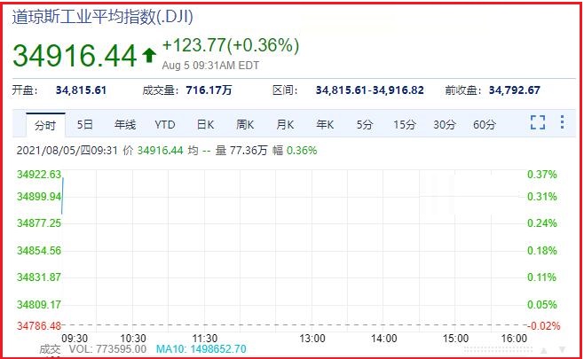 1、截止发稿时间,道琼斯指数报收于:34912.18,成交量:925.53万。