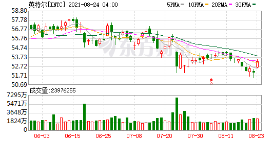 周一收盘,英特尔涨2.35%,报52.23美元。