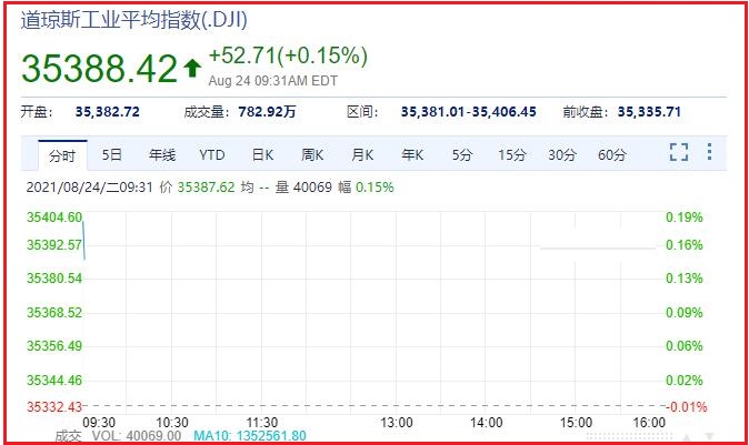1、截止发稿时间,道琼斯报于:35399.72,成交量:1025.10万