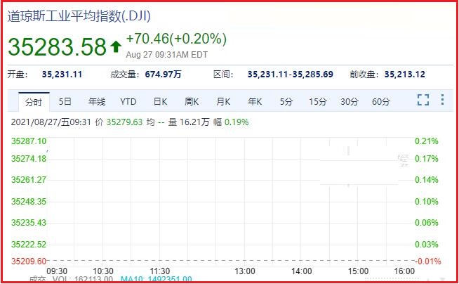 1、截止发稿时间,道琼斯报于;35283.59,成交量;787.03万