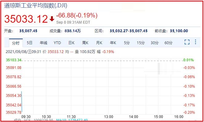 1、截止发稿时间,道琼斯报于:35020.16,成交量:915.07万
