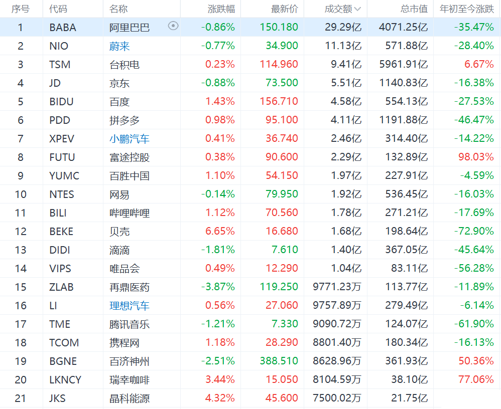 中概股整体涨跌互现,高途教育涨近6%,新东方和瑞幸咖啡粉单涨超3%,好未来涨约3%,腾讯ADR涨超2%,哔哩哔哩、百度涨超1%,网易有道、拼多多涨约1%,理想汽车和小鹏汽车分别涨近0.6%和逾0.4%,阿里巴巴和京东跌超0.8%,蔚来汽车跌近0.7%。恒大ADR继续下跌11.71%。
