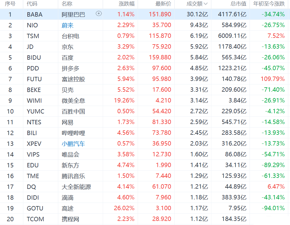 热门中概股总体跑赢大盘,中国恒大在粉单市场收涨33.33%,此前公司称20恒大04债券将于9月23日支付利息。二季度营收增长35%至22.3亿元人民币的高途教育收涨逾26%,森淼科技涨约26%,瑞幸咖啡、好未来涨超7%,斗鱼涨超6%,富途证券涨近6%,阿里巴巴和腾讯ADR涨超1%,京东收涨3.3%。