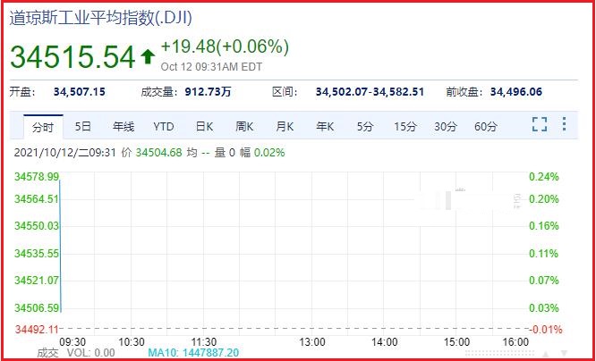 1、截止发稿时间,道琼斯报于:34532.99,成交量:1081.62万