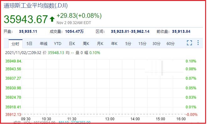 1、截止发稿时间,道琼斯报于:35945.62,成交量:1342.67万