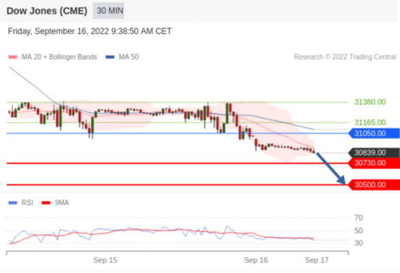 交易策略: 在 31050.00 之下,看跌,目标价位为 30730.00 ,然后为 30500.00 。