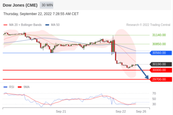 交易策略: 在 30560.00 之下,看跌,目标价位为 30000.00 ,然后为 29700.00 。