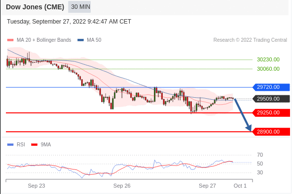 交易策略: 在 29720.00 之下,看跌,目标价位为 29250.00 ,然后为 28900.00 。