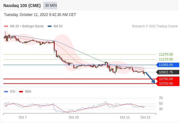 交易策略: 在 11065.00 之下,看跌,目标价位为 10790.00 ,然后为 10700.00 。