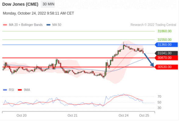 交易策略: 在 31360.00 之下,看跌,目标价位为 30870.00 ,然后为 30530.00 。