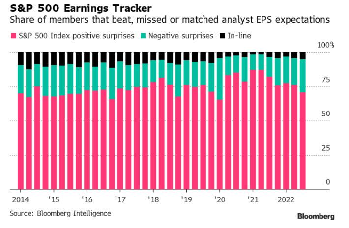 BI高级副分析师Wendy Soong表示,强势美元削弱海外收入价值以及经济增长放缓是导致盈利预测下降的关键驱动因素。她说,这种背景增加了已经在努力应对更高通胀成本的跨国公司的压力。
