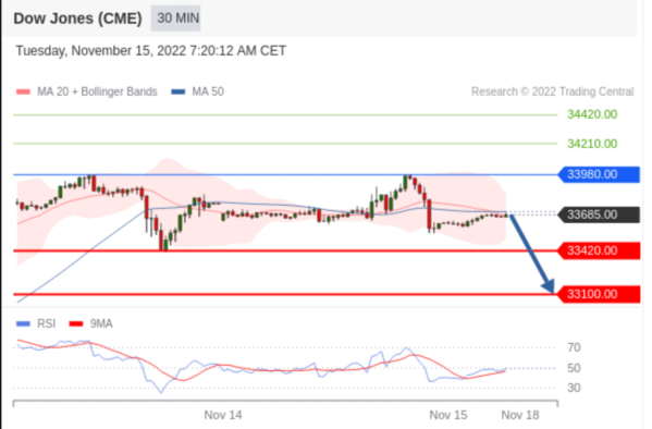 交易策略: 在 33980.00 之下,看跌,目标价位为 33420.00 ,然后为 33100.00 。