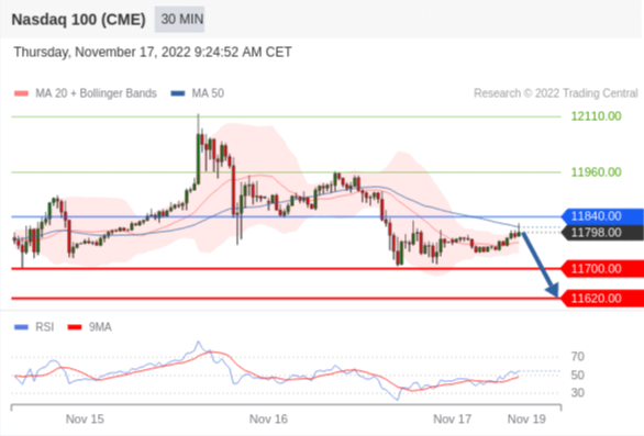 交易策略: 在 11840.00 之下,看跌,目标价位为 11700.00 ,然后为 11620.00 。