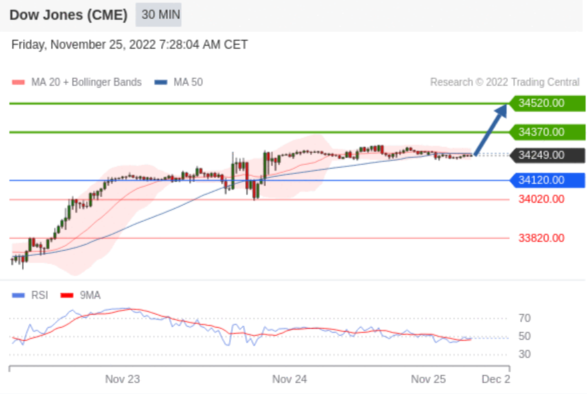 交易策略: 在 34120.00 之上,看涨,目标价位为 34370.00 ,然后为 34520.00 。