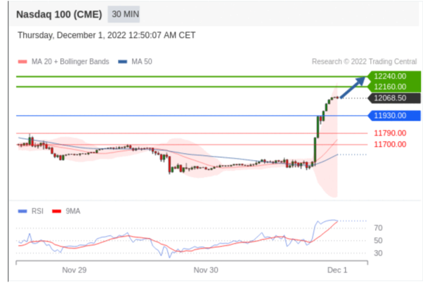 交易策略: 在 11930.00 之上,看涨,目标价位为 12160.00 ,然后为 12240.00 。