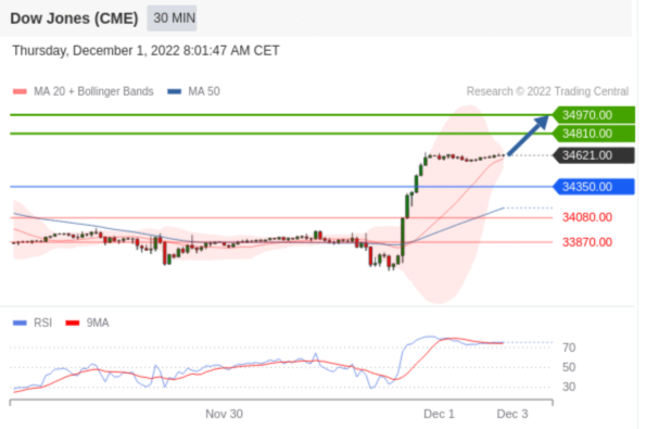 交易策略: 在 34350.00 之上,看涨,目标价位为 34810.00 ,然后为 34970.00 。