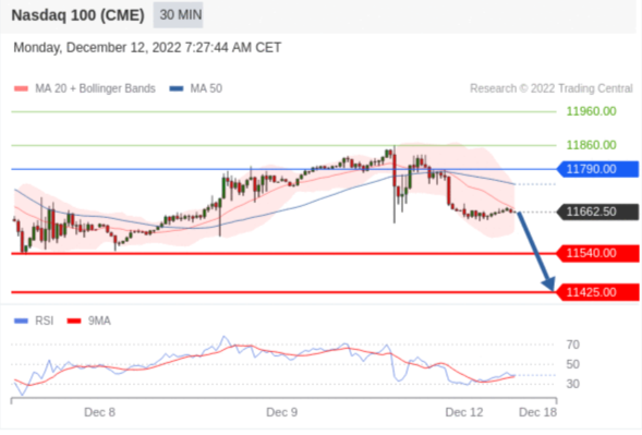 交易策略: 在 11790.00 之下,看跌,目标价位为 11540.00 ,然后为 11425.00 。