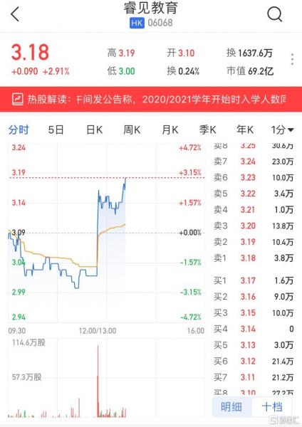 睿见教育(6068.HK)直线拉升涨近3% 2020/2021学年入学人数同比增长18.7%