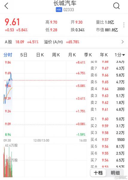 长城汽车(02333.HK)一度急涨至7% 出口业务逆势增长