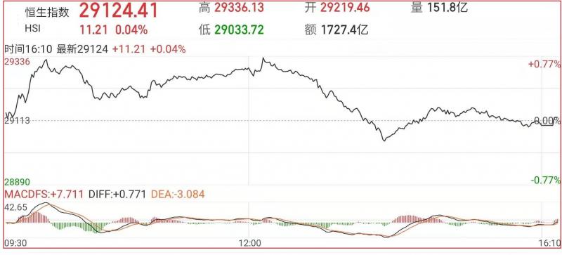 1.上周五恒指早市先高开106点至29219点,其后曾略见拉锯而轻回至29098点。惟沽压不明显之余,买盘又再渗着涌现,故整个大市卒在稳步中再上升,恒指已一度上升223点至29336点。截至收盘,恒生指数涨0.04%,报29124.41点;国企指数跌0.51%;红筹指数跌0.14%;