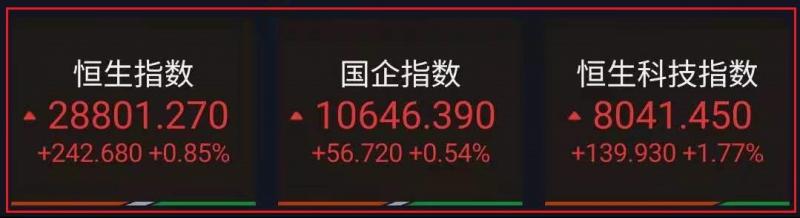 1.上周五恒指早市先轻微高开28点至28586点,其后曾略作整固而轻回至28532点。惟在买盘再度维稳下,大市卒再缓步推上,随后涨幅扩大。截至收盘,恒生指数涨0.85%,报28801.27点;国企指数涨0.54%,红筹指数跌1.45%;