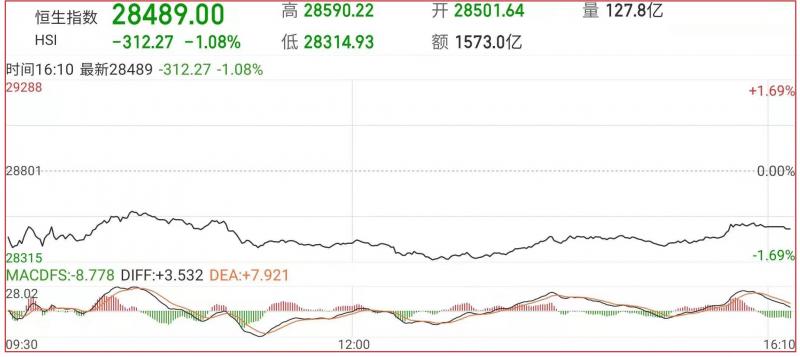 1.港股昨早先低开300点至28501点,其后一直反复于28365点至28590点之间,截至收盘,恒生指数跌1.08%,报28489点;国企指数跌0.93%;红筹指数跌0.74%;