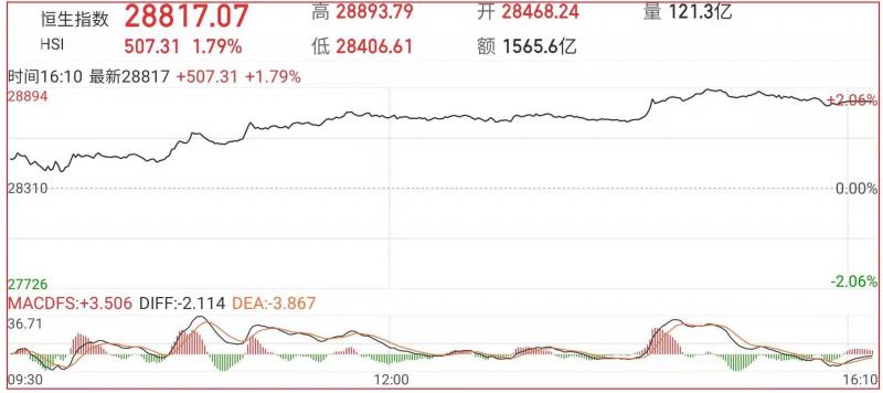 1.港股昨日主要指数高开高走,三大指数全天呈单边上涨行情,尾盘一度涨近600点。股市场正变得更加多元和开放,聚集了一批稀缺优质资产 ,港股市场吸引力将得到进一步提升。截至收盘,恒指涨1.79%报28817.07点,国指涨1.95%,红筹指数涨0.96%;