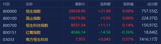 港股上午盘三大指数高开走弱,盘中均转跌。截至午间收盘,恒指涨0.08%报28838点,国指涨0.06%报10679点,恒生科技指数涨0.14%报8031点。盘面上,烟草概念板块领涨,华宝国际、中国波顿皆大幅拉升15%;前期表现弱势的教育股普遍反弹,新东方、思考乐教育、新高教均涨超3.5%;生物医药、物管板块持续活跃,世茂服务再创历史新高;大型科技股涨跌各半,美团、阿里巴巴、百度升超1%,快手大跌超4%;特斯拉概念股、体育用品股全线回撤,特步跌近3%表现较差,安踏李宁均下跌,三者昨日曾创历史新高。南下资金半日净流入23.81亿港元,大市半日成交额为757亿港元。