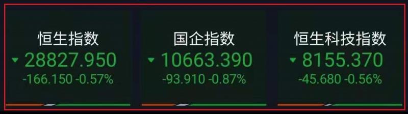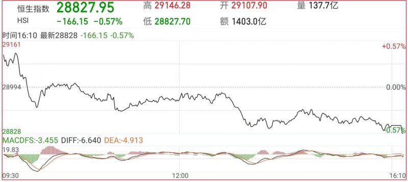 1.恒指昨早市先高开113点至29107点,其后曾略升至29146点。但由于买盘不继,加上零碎沽压再现,故整个大市卒再呈反复,大盘高开低走。截至收盘,恒指跌0.57%,报28827.95点,国企指数跌0.87%,红筹指数跌0.62%;