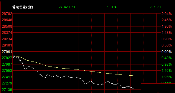 港股指数跌势持续扩大,恒指跌幅扩大至近3%,国指大跌3.2%,恒生科技指数更是暴跌近4%。科技股、石油股、保险股等权重均大幅下跌,美团大跌超6%,腾讯、阿里巴巴大跌4%,三者拖累恒指下挫300点。