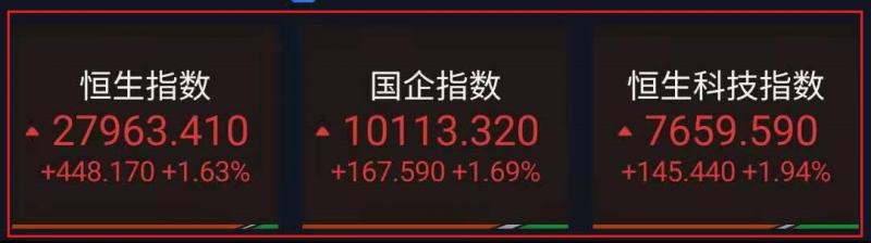 2.恒生科技指数(7659.59 145.44 1.94%)涨1.94%,快手、海尔智家(29.2 1.45 5.23%)涨超5%,阿里、腾讯涨近4%,美团、京东、百度等涨超3%;