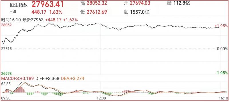 1.恒指昨早市先高开179点至27694点,其后曾稍作整固而轻回至27694点。惟由于沽压并不明显,加上买盘又再渗著涌现,故整个大市卒再推上。恒指一度急升416点至27931点,午后恒指涨幅有所收窄。截至收盘,恒生指数涨1.63%,国企指数涨1.69%,红筹指数涨0.99%;