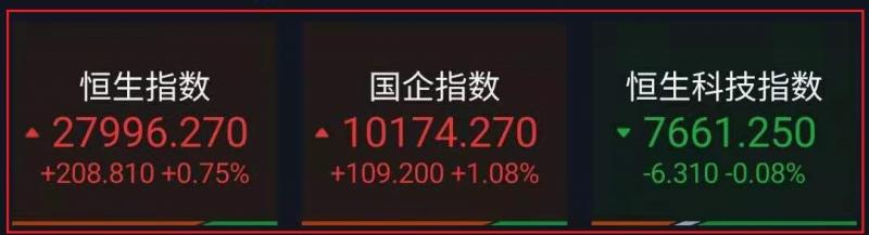 1.恒指昨早先轻微高开14点至27801点,其后一直处整固之中,上落于27741点至28007点之间。午后持续造好,仅收窄升幅,仍维持在28000附近波动。截至收盘,恒指涨0.75%,国企指数涨1.00%,红筹指数涨1.03%;