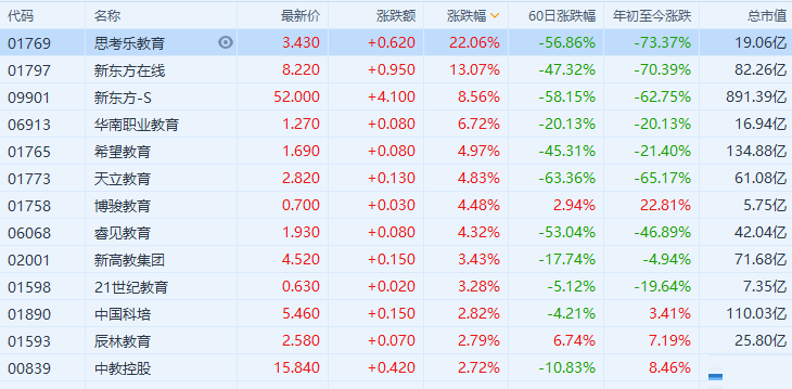 教育股延续昨日强势,思考乐教育(1769.HK)大涨22%领涨,新东方在线涨13%,新东方涨超8%,希望教育、天立教育、睿见教育涨超4%。三孩配套政策来临,《中共中央 国务院关于优化生育政策 促进人口长期均衡发展的决定》前日(20日)晚间正式公布。此外,教育部等六部门印发意见部署教育新型基础设施建设,《意见》提出,要充分利用国家公共通信资源,建设连接全国各级各类学校和教育机构间的教育专网,提升学校网络质量,提供高速、便捷、绿色、安全的网络服务;推动各级各类教育平台融合发展,构建互联互通、应用齐备、协同服务的“互联网+教育”大平台。
