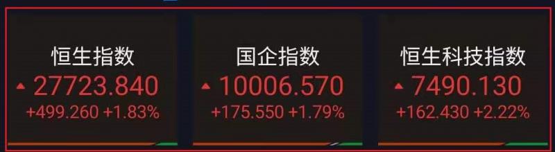 1.恒指昨早市先高开240点至27464点,其后略作拉锯而轻回至27455点。惟由于沽压收敛,加上买盘态度略为进取,故市势得以再进一步推升,港股高开高走。截至收盘,港股恒指涨1.83%,报27723.84点,国企指数涨1.79%,红筹指数涨1.50%;