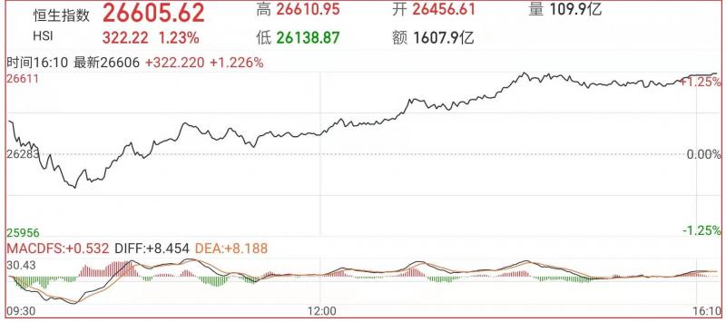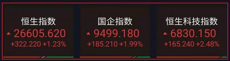 1.恒指昨早先高开173点至26456点,其后一直处于拉锯之中,由于内地监管当局对一众新经济之相关措施市场该已作消化,故场内之避险情绪该已渐降温,即沽压大致上已稍收敛。只是买意仍较保守,故在交投略偏疏,三大指数午后涨幅进一步扩大。截至收盘,恒指涨1.23%,报26605.62点,国企指数涨1.99%,红筹指数涨1.04%;
